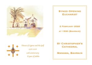 His service of consecration and enthronement was held at St Christopher’s Cathedral, Bahrain on 24 May 2024. He was enthroned in St Paul’s Cathedral, Nicosia on 22 June 2024.