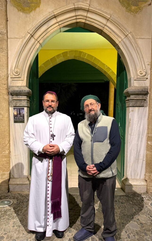 Imam Shakir Alemdar last night welcomed Bishop Sean and the Reverend Navina Thompson to share iftar at Hala Sultan Tekke, a mosque on the banks of the Salt Lake in Larnaca, Cyprus. They were honoured to be joined by the Ambassador of Kazakhstan, Nikolay Zhumakanov, and his wife Assima, for a wonderful evening of warm conversation and generous hospitality.