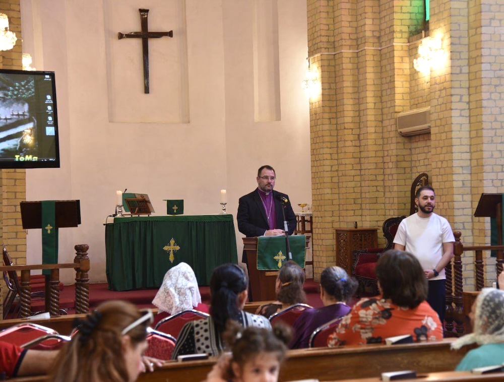 Bishop Sean’s pastoral visit to St George Baghdad came to a joyous close on Sunday evening with a service of Holy Eucharist, where he preached on the parable of new wine and new wineskins—and shared with the people of St George’s the warm greetings of their Diocesan family. (Piece continues below photos.)