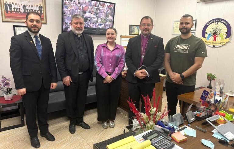 The church compound is home to St George’s School of the Redeemer (Al-Fadi), where Bishop Sean met school principal Ayser Albert. He also visited Al-Fadi Kindergarten, meeting principal Ban Atheer and logistics manager Fadi Sami. This was a valuable opportunity for Bishop Sean to spend time with staff, learning more about the school curriculum and operational challenges.