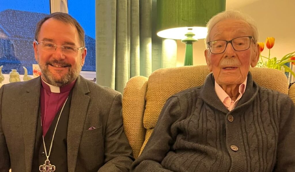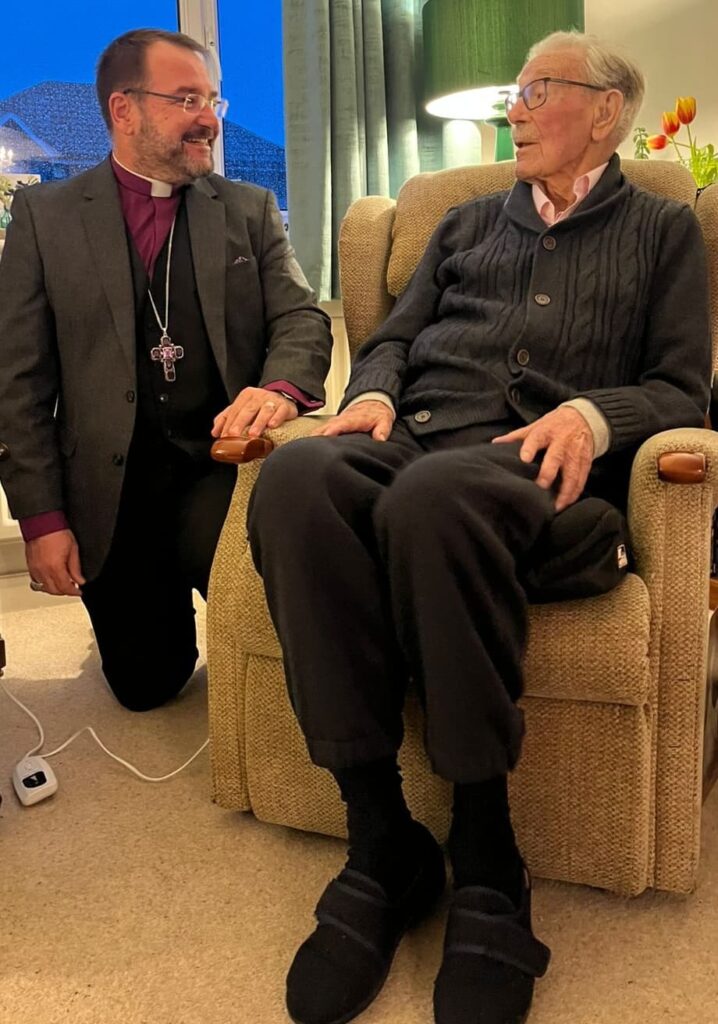 Below centre and right: Bishop Sean visited Bishop Harry in November 2024. Bishop Harry shared recollections of his ministry with his customary wit and humour. At the end of their time together the two bishops joined in prayer for the Diocese, and Bishop Sean received Bishop Harry’s blessing for his ongoing ministry.